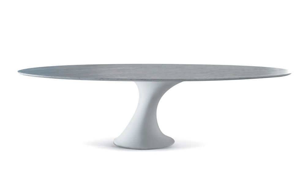 Стол с базой из белого матового кристалпланта. Топ из белого матового мрамора (BCO). Дополнительно возможен заказ менажницы Lazy Susan.