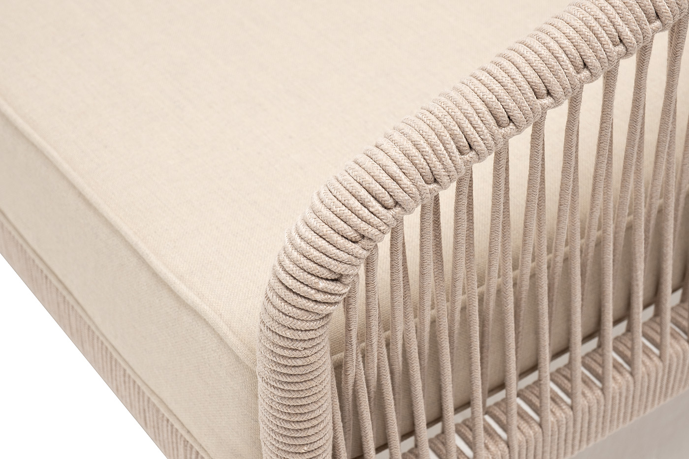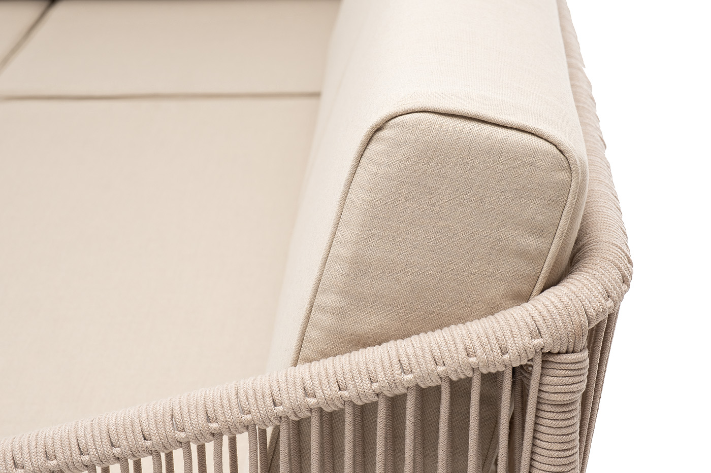 "Канны" диван модульный плетеный из роупа, каркас алюминий белый, роуп бежевый круглый, ткань бежевая 15052